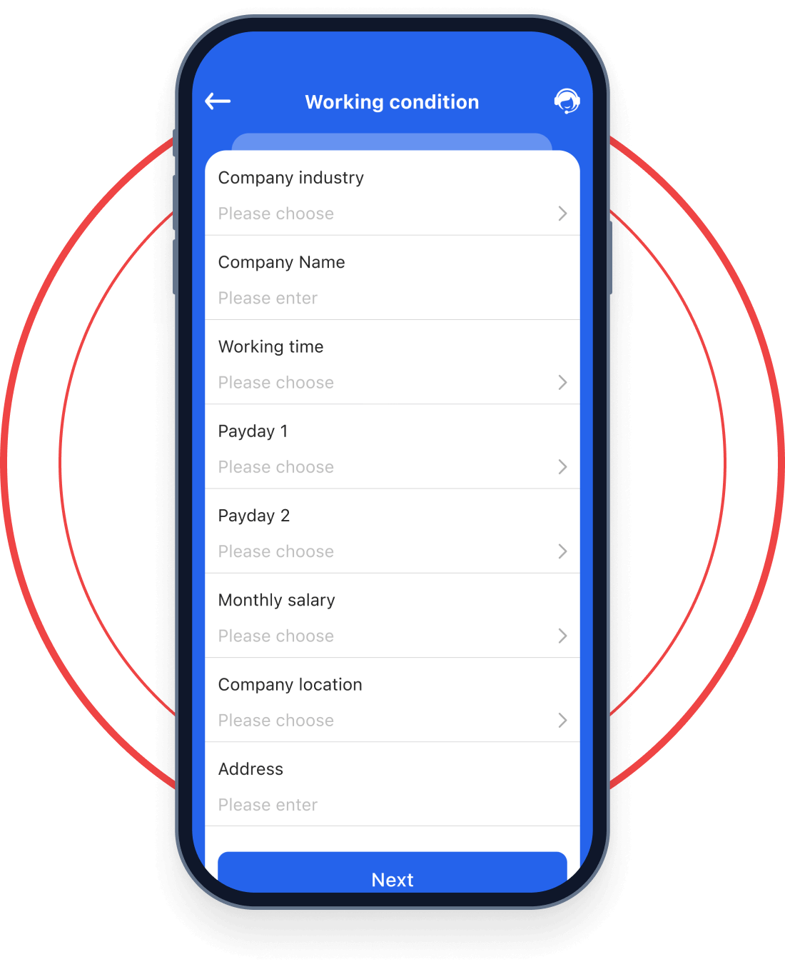 Tap the loan button on the Monlane home page and carefully fill in the relevant information for your loan application.